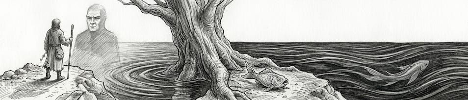 The fish suffers at the tree, not in the water. What is it that brought you here, to the base of the tree, where all you can do is shamefully flop about? Stop fighting the current. The water around the fish tells the fish the way, if only it remembers how to listen.